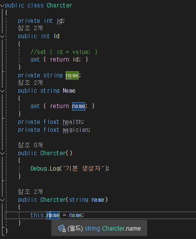 일단 위에 코드에서 멤버변수는 프로퍼티로 구현되어있습니다. 위와같은 형태로 줄여쓰는 것이 가능합니다.