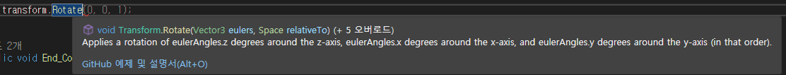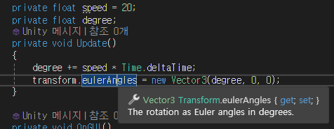 transform.eulerAngles를 통한 회전입니다.