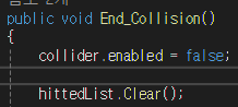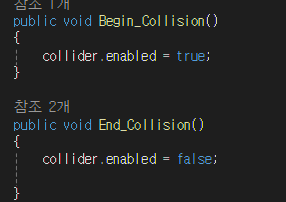 우선 충돌의 시작과 끝을 만들어줍니다.