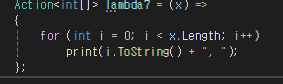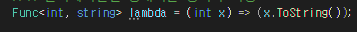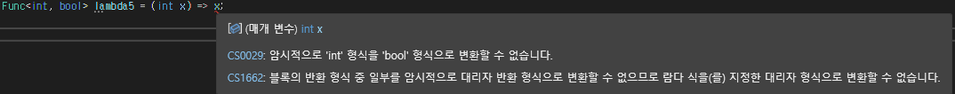 람다식은 델리게이트의 형식과 일치해야합니다.