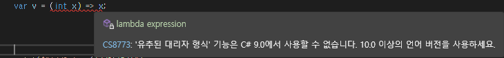 람다식은 object 타입이 없으므로 해당 형태는 제한이 됩니다.
