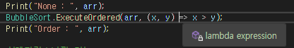 이번엔 람다식으로 오름차순입니다. 식 본문 처럼 한 줄로 표현된 모습입니다.